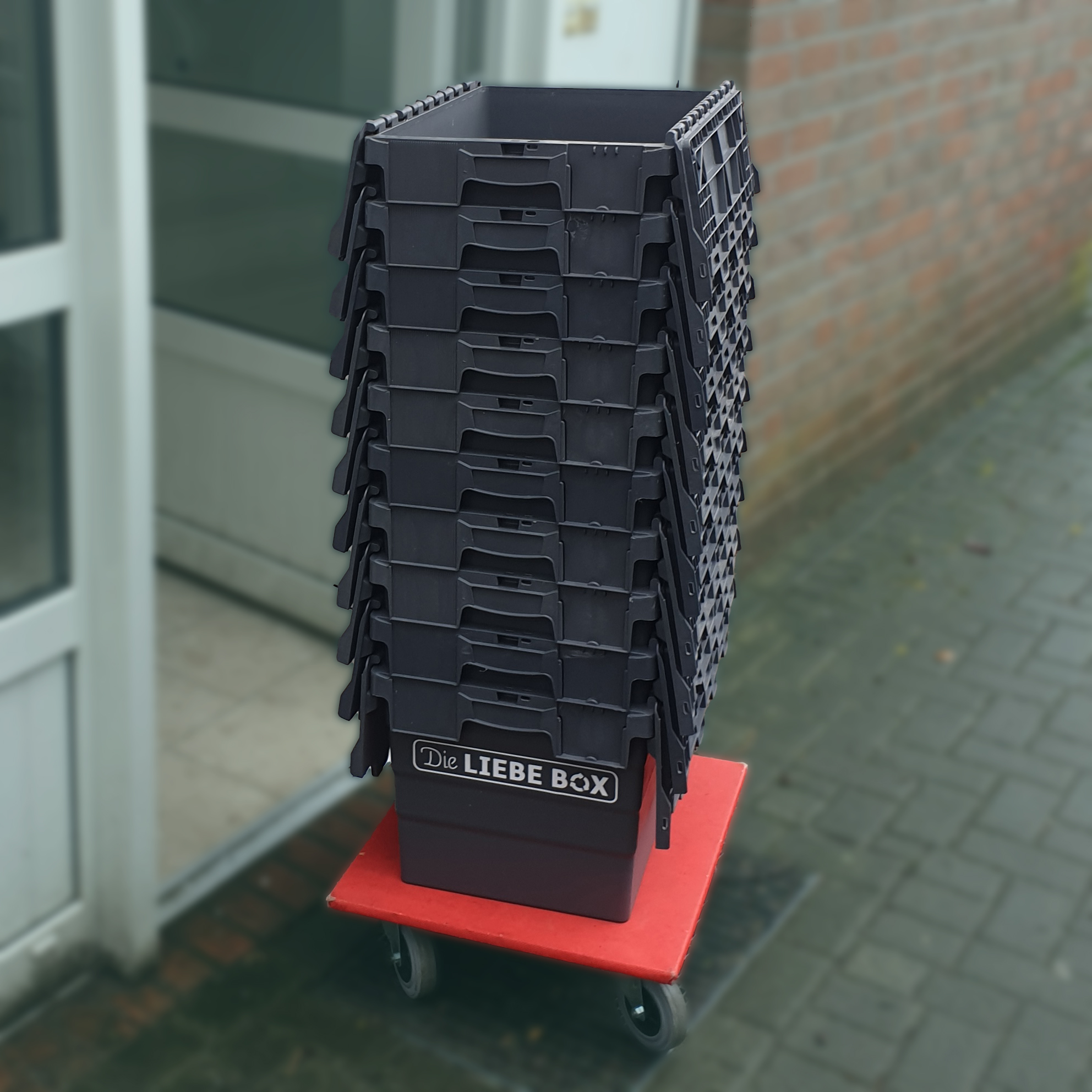 • die leeren Boxen lassen sich platzsparend stapeln bis zur Abholung